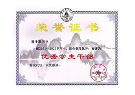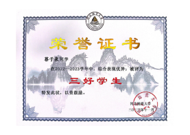法学2020级本科生,综合成绩排名专业前列,担任4201250105班班长,获得2021-2022学年度本专科生国家奖学金,河北省优秀毕业生、全国大学生节能减排社会实践与科技竞赛三等奖、互联网+大学生创新创业计划大赛省级铜奖,以负责人身份获得“挑战杯”全国大学生课外学术科技作品竞赛红色专项活动省级二等奖、2021-2022年度河北省大学生“调研河北”社会调查活动立项、第十三届北京市模拟法庭竞赛团体优秀奖、连续三年获得校级一等奖学金、优秀学生干度和三好学生等荣誉。
