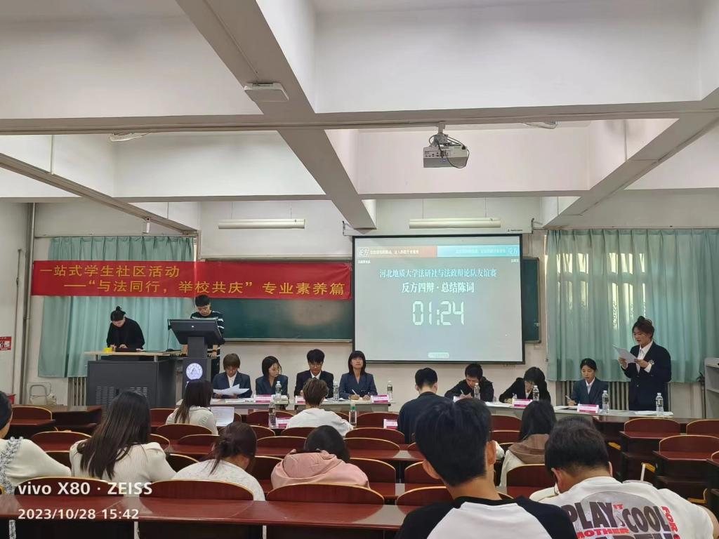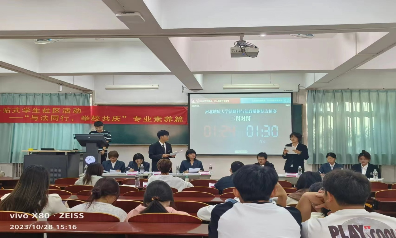 北校区举办了“与法同行 举校共庆”宪法日主题辩论赛,辩论主题围绕“法治进程的推动,是人的提升更重要还是法的提升更重要?”开展辩论。