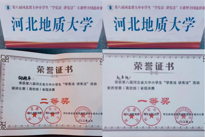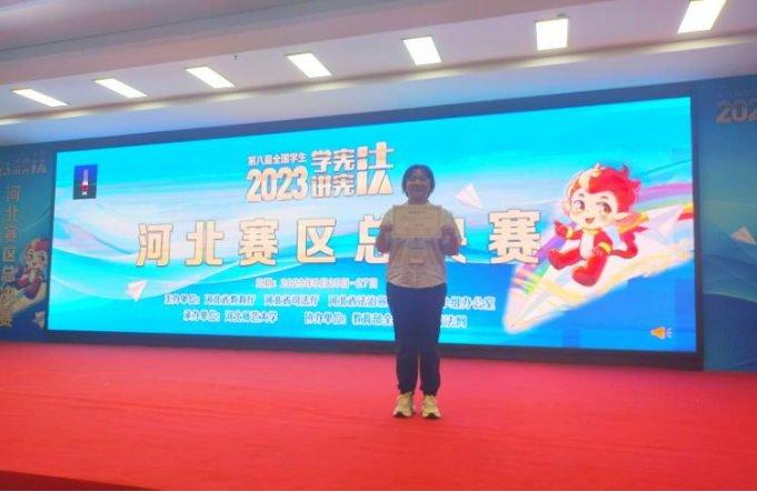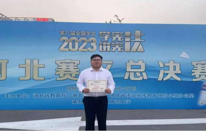 在演讲比赛,向桓平以《泱泱华夏梦,宪法筑脊梁》为题,从依宪依法防控疫情、依宪依法抗险救灾中探索到“人民至上!生命至上!”的真正含义,从与全国人大代表的故事中找寻人大代表舍小家为大家的秘密。最后,向桓平呼吁青年要学宪法、懂宪法,用青春力量助推国家司法建设,奋力谱写社会主义现代化发展的崭新篇章。经过河北省高校64名演讲选手激烈角逐,向桓平获得素养竞赛(高校组)省级决赛二等奖。