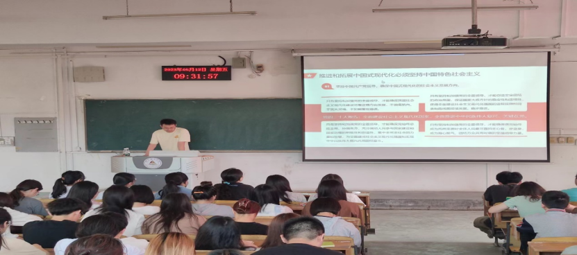 李柏松同志首先带领同学们回顾了坚持社会主义方向贯穿中国式现代化的历史进程,历史的经验告诉我们,资本主义道路在中国是走不通的,长期以来,在以毛泽东同志为主要代表的中国共产党人对社会主义建设进行艰辛探索的基础上,由以邓小平同志为主要代表的中国共产党人在改革开放的伟大实践中开创出中国特色社会主义。在党的二十大报告中习近平总书记阐述了新时代新征程中国共产党的使命任务,他强调必须牢牢把握坚持中国特色社会主义前进道路,不断彰显中国特色社会主义制度优势,不断增强社会主义现代化建设的活力和动力。