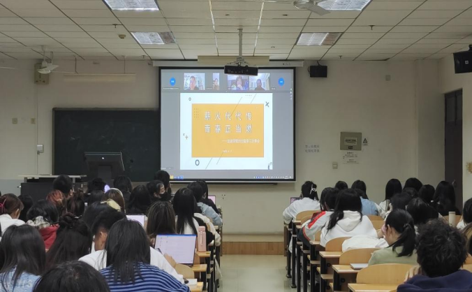 2022级辅导员张颢老师主持,党委书记马沁芳老师参加此次分享。