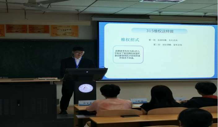 法学研究会代表李子恒同学上台进行分享,他聚焦时事,围绕当今社会热点,向同学们讲述经典侵权案例,例如消费者在某主题密室逃脱商家处购买了团购券,并在有效期内多次联系商家预约,商家却迟迟未安排活动;由于商家拖延导致团购券已经过期,无法使用也不能退款;消费者反映于某日到某购物广场影城看电影,入场前工作人员告知每个人需要花费10元购买3D眼镜才能观看,认为不合理,请市场监督管理局帮助处理等案例。在轻松愉快的氛围下,刘同学不仅为同学们讲解了许多维权的方法,也为同学们种下了合法维权、不惧侵权的意识。最后,在与同学们的互动过程中,邀请参加本次讲座的同学提出自己在生活工作中遇到的侵权行为,并针对具体情况法研同学向同学们讲解了正确的维权途径。睿智者以法护身,保护消费者合法权益,做好消费维权工作,是全社会的共同责任。