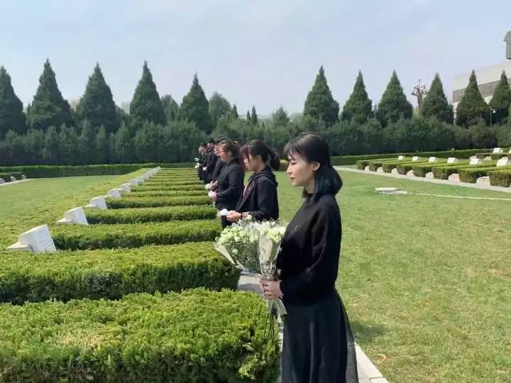 程玥溪老师与学生代表共同前往华北军区烈士陵园举行“缅怀革命先烈,弘扬民族精神”烈士陵园祭扫活动。