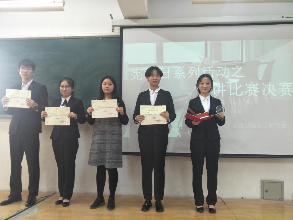 通过这次比赛,让我们对宪法有了更充分的了解,使我们在今后的日子里更好的学习法律。同时鼓励同学多多参与类似的比赛,提升表达能力,保持对法律的热爱之心。希望同学们在大学平台里多历练,在法治社会里多学习,做到知行合一,超越自我!