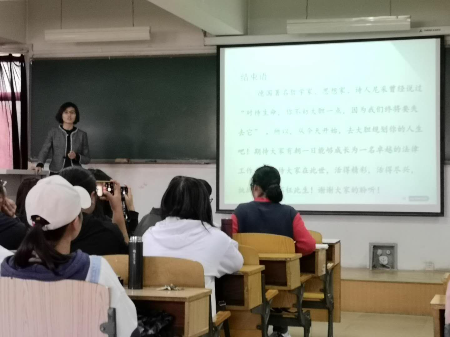 党委副书记马沁芳、辅导员张璇以及所有法学学生参加了本次讲座。任律师以其亲切的话语、独到的见解以及她的个人魅力深深折服了在座的师生。