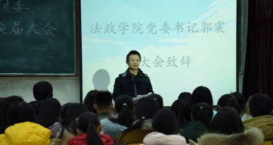 第六届团委学生会换届大会正式召开。首先,党委书记郭震的讲话肯定了上一届学生工作,同时也对新一届团委学生会的工作提出了要求。随后,第五届团委学生会主席李亨对过去一年的工作做了简要的总结和回顾,展现了团委学生会的辉煌成绩。接着,由程玥溪老师宣布了第六届团委学生会主席团成员及部长名单。交接仪式后,第六届团委学生会主席团代表李然和部长代表霍天宇分别发表了就职感想。然后由刘畅作为部员代表发言,她表示很荣幸加入团委学生会大家庭,并会努力成长为新一代的中坚力量。最后,党委副书记马沁芳老师对本次大会做了意义深刻的总结发言,她表示对学生会将继续寄予重望,希望大家扎扎实实地开展工作,用行动来证明自己的能力,用行动来为法政添彩。