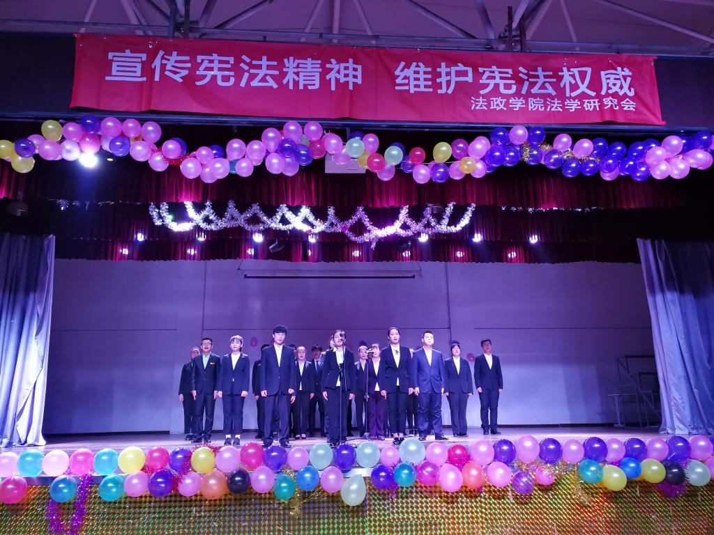 在充满活力的舞蹈中本次宪法日汇演拉开了序幕,接着各个演员也用自己的方式登场,表达对宪法的崇敬和法治精神的传扬:幽默又不失寓意的小品给我们展示了严密裁判下的“法网恢恢”;精彩而充满激情的演讲为法治而歌、抒宪法之魂;理性而富含逻辑的辩论赛彰思辨之风、显宪治之格.....每团体都以自己精彩的节目展示独特魅力和自己对宪法的理解,演员们洋溢的热情和活力也给观众传递了当代宪法精神,赢得了一阵阵掌声。最后,全体起立举拳郑重宣誓,维护宪法权威,为建设富强、民主、文明、和谐的社会主义国家努力奋斗。汇演在庄严的宣誓中接近了尾声,但宣誓的崇敬和对宪法的权威却久久不散。