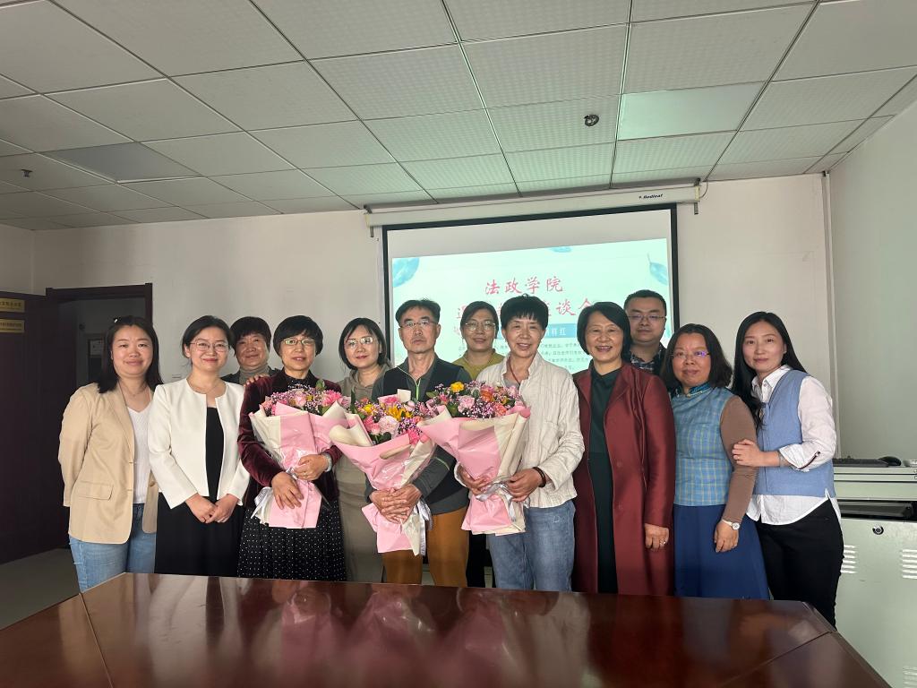 会议室内笑语盈盈,花香四溢,为四位退休教师举办了退休教师座谈会。