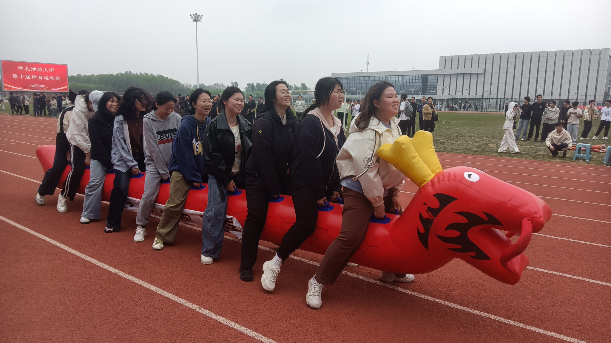 代表方队步伐铿锵、口号嘹亮,以整齐划一的队列变换和独具匠心的创意展演赢得全场瞩目。赛场上,法政学子奋勇争先,尽显青春锋芒。运动员们沉着应战、锐意突破,在多个项目中展现青春速度与耐力,彰显法政体育后备军的蓬勃朝气。三尺讲台育桃李,红色跑道竞风流,法政教师团队同样留下闪亮足迹。无论是拔河绳上的咬牙坚持的韧劲,还是短跑赛道冲刺终点的全力以赴,老师们以自身行动传递拼搏信念,感染着在场每一位学子,成为“以体育人”最生动的注脚。赛场外,同学们呐喊助威声浪如潮,志愿者服务细致周到,观赛师生秩序井然。