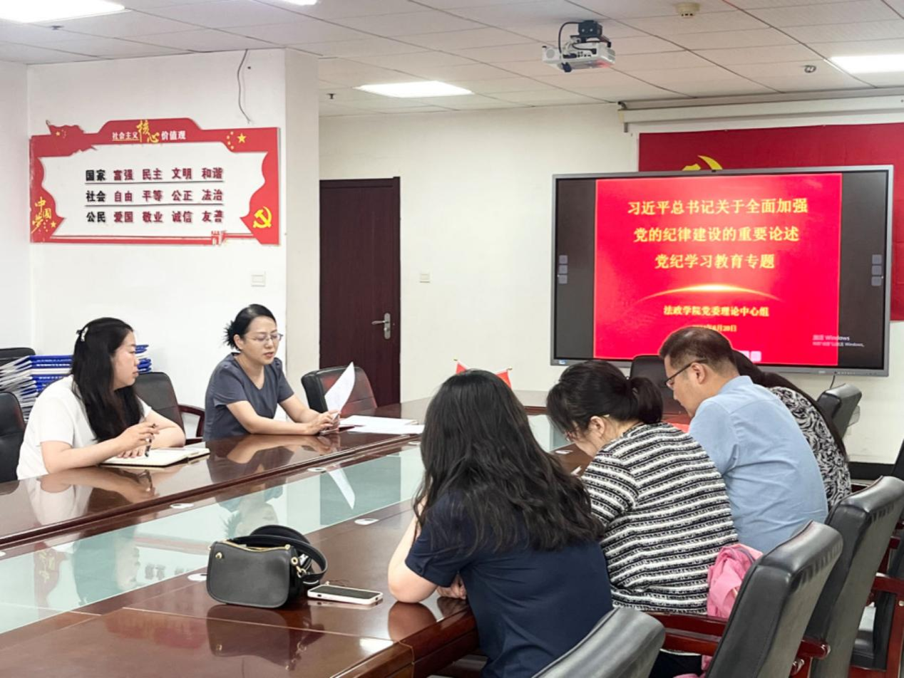6月20日,黄色网站大全 党委书记董莉在会议室主持召开了党委理论学习中心组党纪学习教育会,深入学习习近平总书记关于全面加强党的纪律建设的重要论述,党委理论学习中心组全体成员参加。