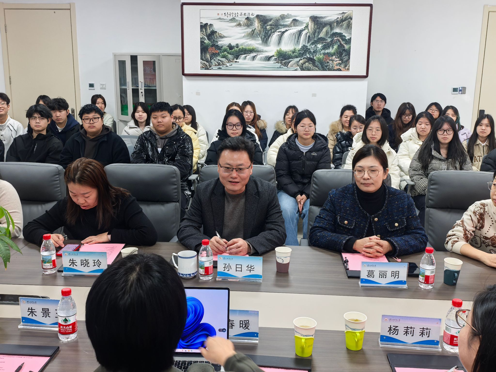 各年级辅导员、获奖学生和学生代表近50人参加典礼仪式,环境法教研室主任葛丽明老师主持本次会议。