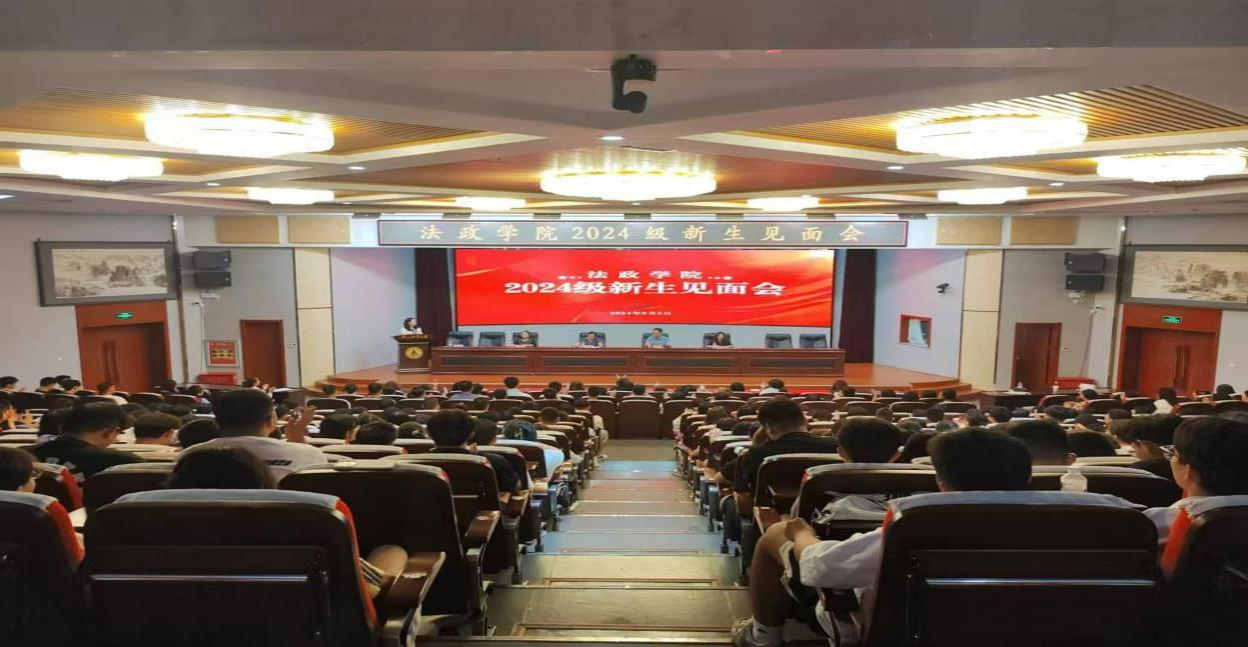 党委书记董莉教授、院长孙日华教授、学院党委副书记朱晓玲老师、公共管理系主任王丽慧教授、法学系主任李慧英教授,会议由党委副书记朱晓玲老师主持。2024级辅导员陈苏怡,2022辅导员韩爱萍,研究生辅导员李斐斐参加了见面会。2024级全体本科新生(含专接本)和2024级研究生共计370余新生参加会议。